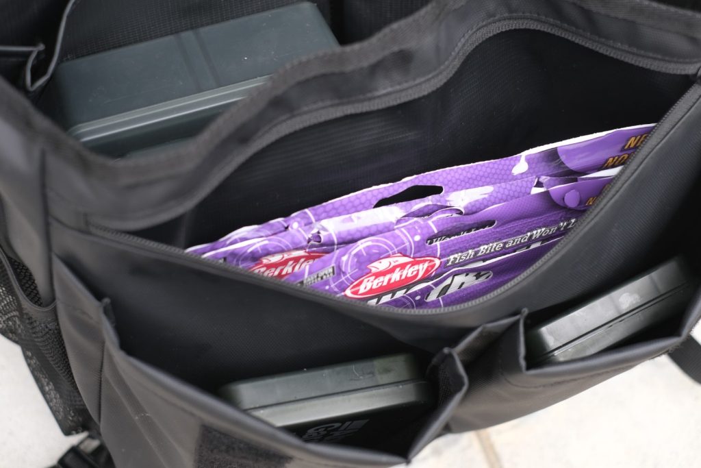 Bait Packが丁度よく入る大きさなので、フックやシンカーなどの備品を入れるスペースに丁度良いですね。