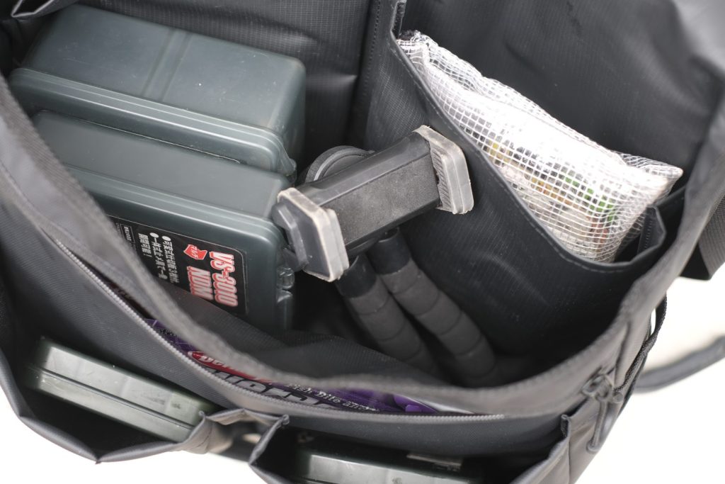余ったスペースにはまだルアーボックスも入れても良いですし、自分の場合は撮影用の三脚なども入れるのでありがたいです。