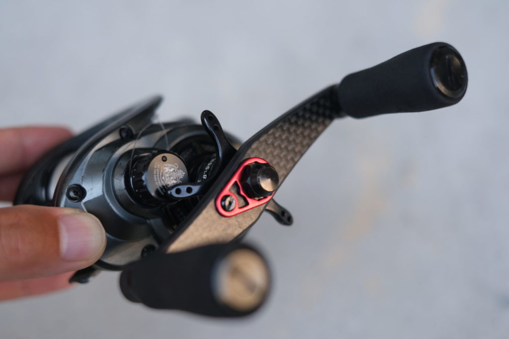 デフォルトでこの高級なハンドルが付いているのはさすがハイエンドリール。